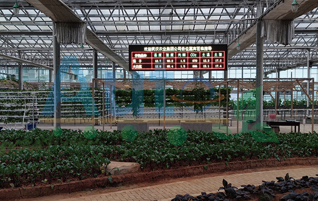 尺寸定制,耐高溫、耐高濕。 三種色彩高亮顯示,字體分辯率高。 顯示園區的氣象數據。 顯示種植區的環境數據。 顯示種植品種名稱、園區名,體現現代農業、數字農業、精準農業。