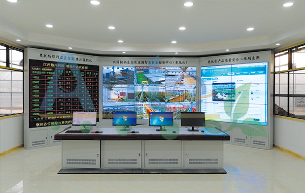 大屏幕LED顯示屏:不斷翻屏顯示,能顯示數百(座/區)溫室的環境數據。