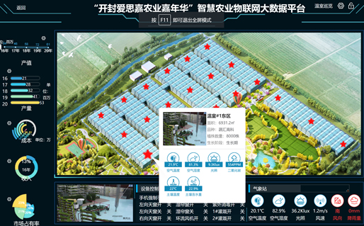 展示各個溫室的環境數據、變換曲線、實時影像、設備狀態。